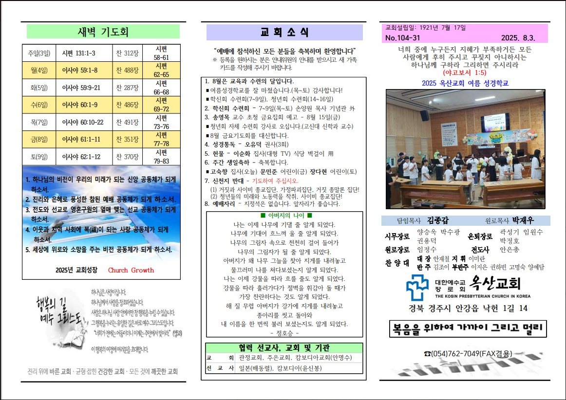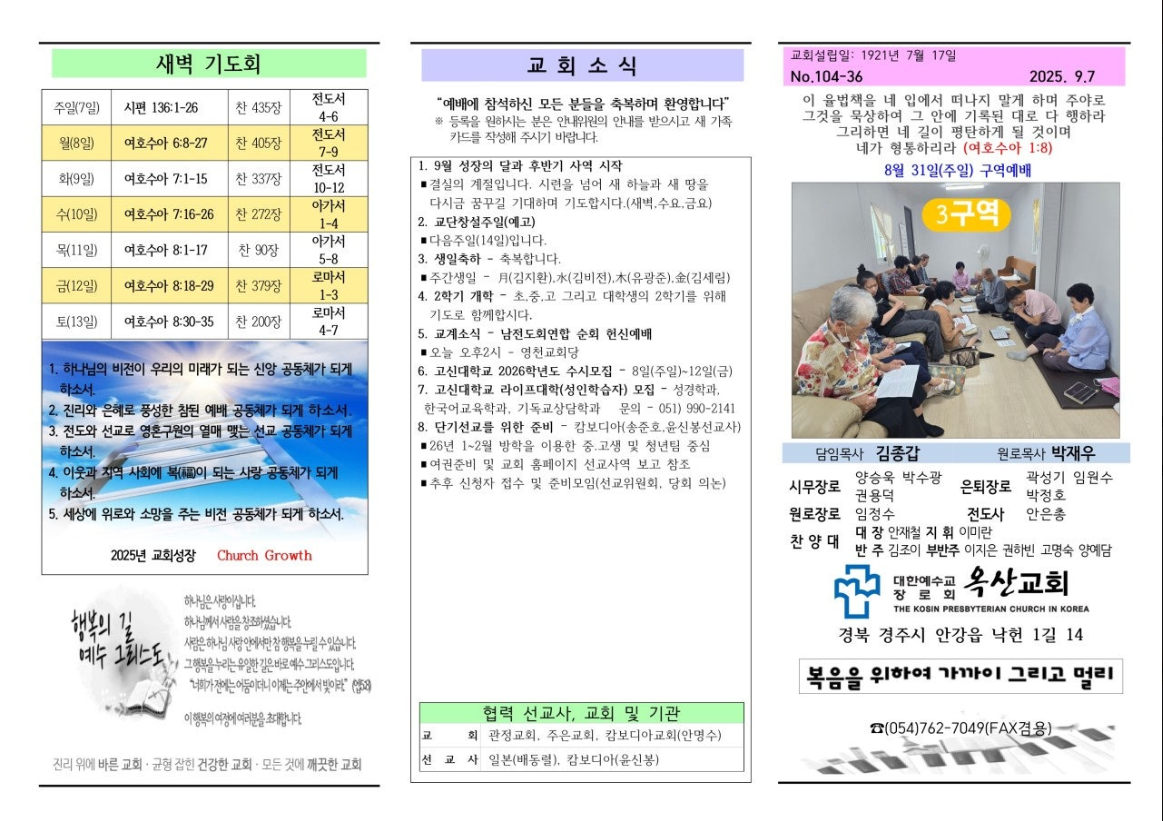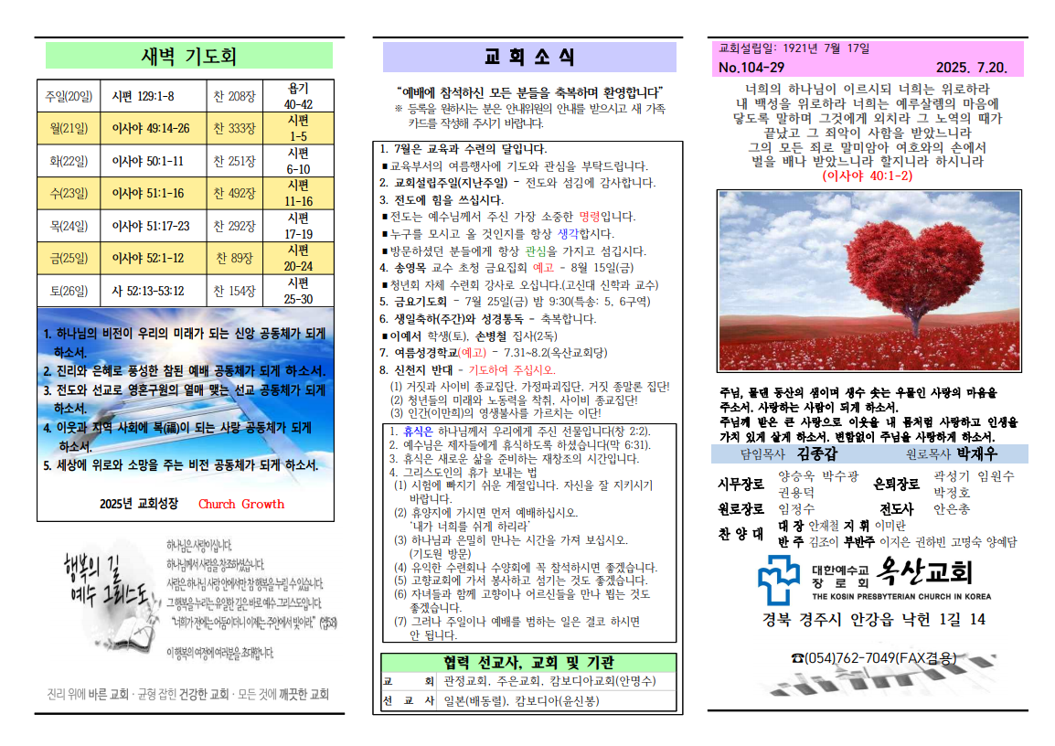 2025. 07. 13 104주년 기념 주일 주보