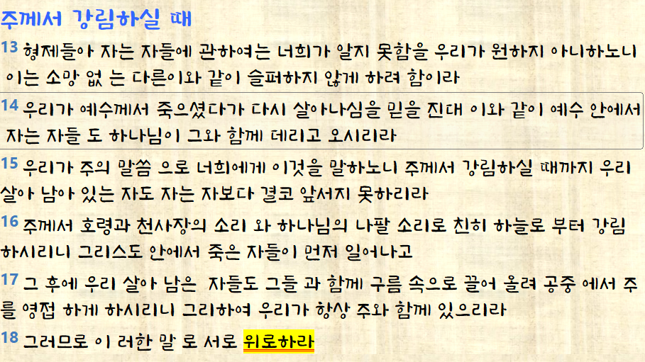 < 데살로니가 전서 4:13-18 >